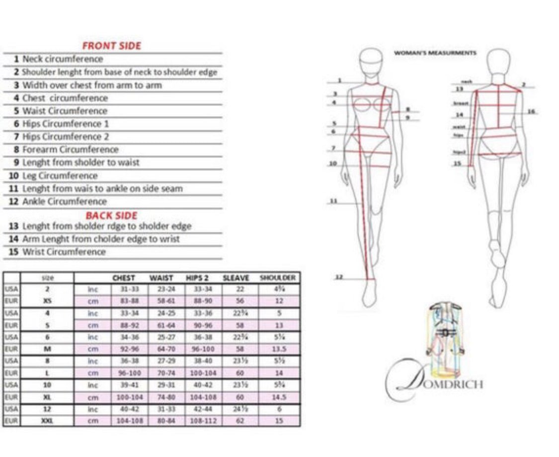 | 2XL/12 | 152-15859.8-62.2 | 74-8029-31 | 65-6925-27 | 79-8531-33 | 69-7227-28 |