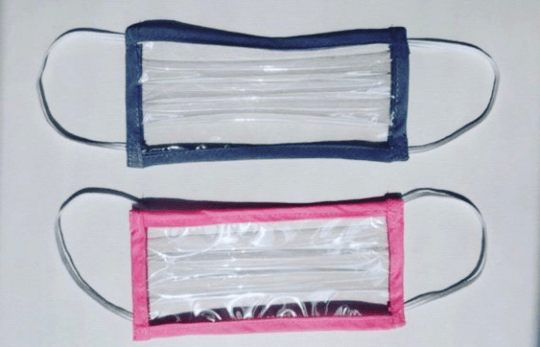 Clear vinyl face cover with different colors of trim. Unique and created to keep you safe accessory!