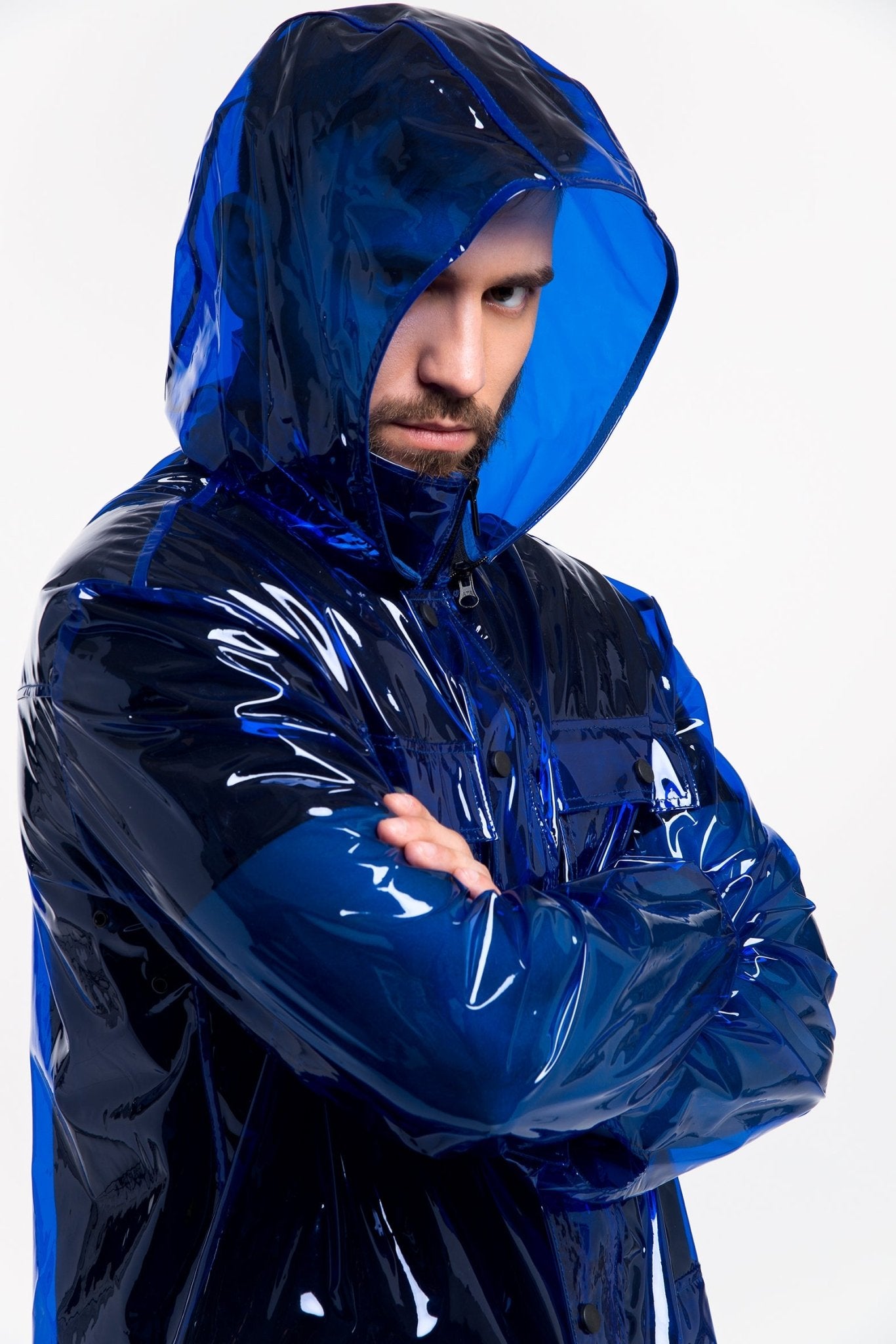 Men’s designed Rain Jacket with removable hood! Men’s transparent clothing.